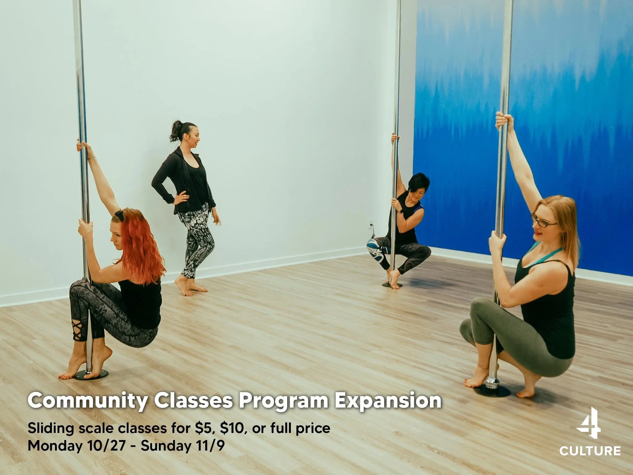 From October 27 to November 9, students can purchase a class pass on a sliding scale: $5, $10, or full price.Passes can only be purchased and used during this two week period.These community passes can be applied to any drop-in classes we offer during this time frame. This offer does not apply to any series classes, workshops, private lessons, open pole, or rentals.If you have an existing monthly membership or class package during this period and would like to use a sliding scale pass instead, please contact hello@ascendancestudios.org for support.